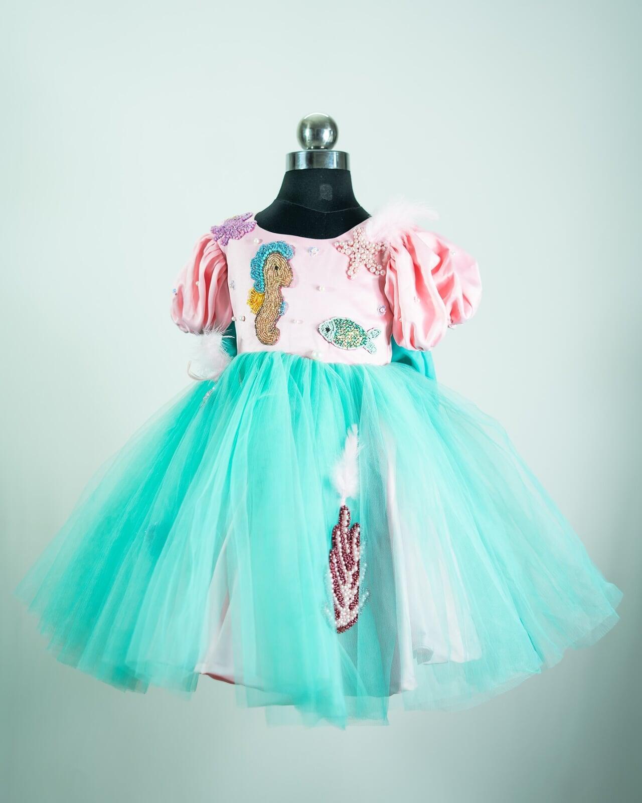 Tired of synthetic sparkle? Try this soft, nature-inspired piece - The Garden Bloom Tutu. This one’s straight out of a woodland fairytale. It's a mix of pastel pinks and greens, delicate flower appliqués, and petal-cut hems. It has a net overlay with leaves embroidered into it, and a cotton slip that keeps things breathable.