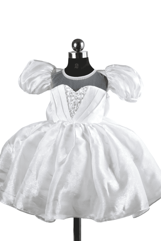 Elevate your child's fairy tale dreams with the Fairy Frills White Pearl Satin Gown, an ethereal gown that glows in a luminous snow-white hue with delicate gray accents. Crafted from shimmering silk organza, the dress embodies the elegance of moonbeams on the sea, wrapping its wearer in graceful layers of whimsy. Its bodice, adorned with cascades of pearly embellishments, forms a magical heart of enchantment. This dress is not just attire—it's a journey into a whimsical fantasy, where every child becomes the princess of their own story, enveloped in the beauty of dreams realized.